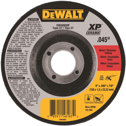 View full detailsDeWALT (DWA8959F) T27 XP CER Fast Cut-Off Wheel, 6" x 0.045" x 7/8"