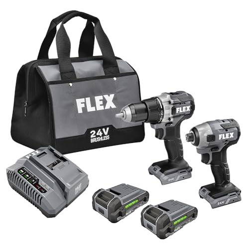 View full detailsFLEX 24V Brushless Cordless 2-Tool Combo Kit: 1/2-Inch 2-Speed Drill Driver and 1/4-Inch Hex Impact Driver with (2) 2.5Ah Lithium Batteries and 160W Fast Charger