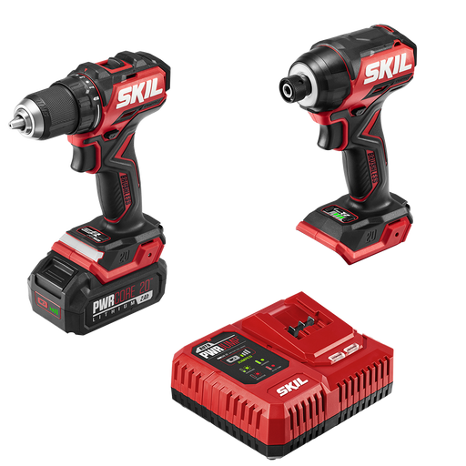 SkilFeatures: 2-TOOL KIT—Set includes a Brushless 20V Drill Driver, Brushless 20V Impact Driver, a PWRCORE 20™ 2.0Ah lithium battery, and PWRJUMP™ ch...
