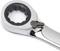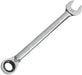 The reversible ratcheting combination wrenches from GEARWRENCH are a staple for every tool box. The flush-mounted reversing lever allows the user to switch motion left to right without needing to remove the wrench from the fastener increasing productivity. The 15° offset on the ratcheting box end allows for greater knuckle clearance and safer access to the fasteners. The ratcheting box end is designed to need as little as 5° to move fasteners versus 30° for standard wrenches and features off-corner loading for a better grip on the fastener and reduces fastener rounding. The wrenches are made from strong alloy steel with a bright, full polish chrome finish.