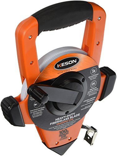View full detailsKeson NRS10100H Nylon-Reinforced Steel Blade Tape Measure, Speed Rewind (Graduations: 1/10, 1/100), 100-Foot