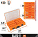 • REMOVABLE BINS: Organize small parts such as wire nuts, connectors, and fasteners in 8 removable bins
