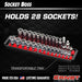 Ernst Mfg. 8493 RD Socket BOSS Tray High-Density System with (2) Red 13" Socket Rail + (28) Twist Lock Clips, 3/8" Drive - Made in USA