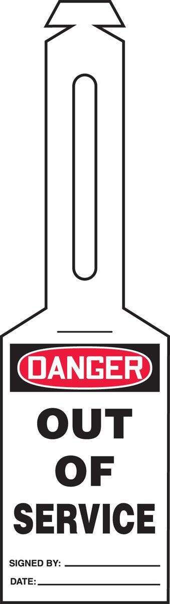 View full detailsAccuform TAL354 Plastic Loop 'n Strap Tag, "Danger Out of Service", 5-1/4" Length x 3-1/4" Width with 6" Strap (Pack of 25)