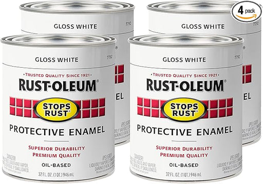 View full detailsRust-Oleum 4PK Stops Rust Brush On Paint, Quart (4 Pack), Gloss White, 128 Fl Oz