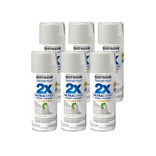 Rust-Oleum 355060 Painter's Touch 2X Ultra Cover Spray Paint, 12 oz, High Gloss Thunder Cloud (Pack of 6)