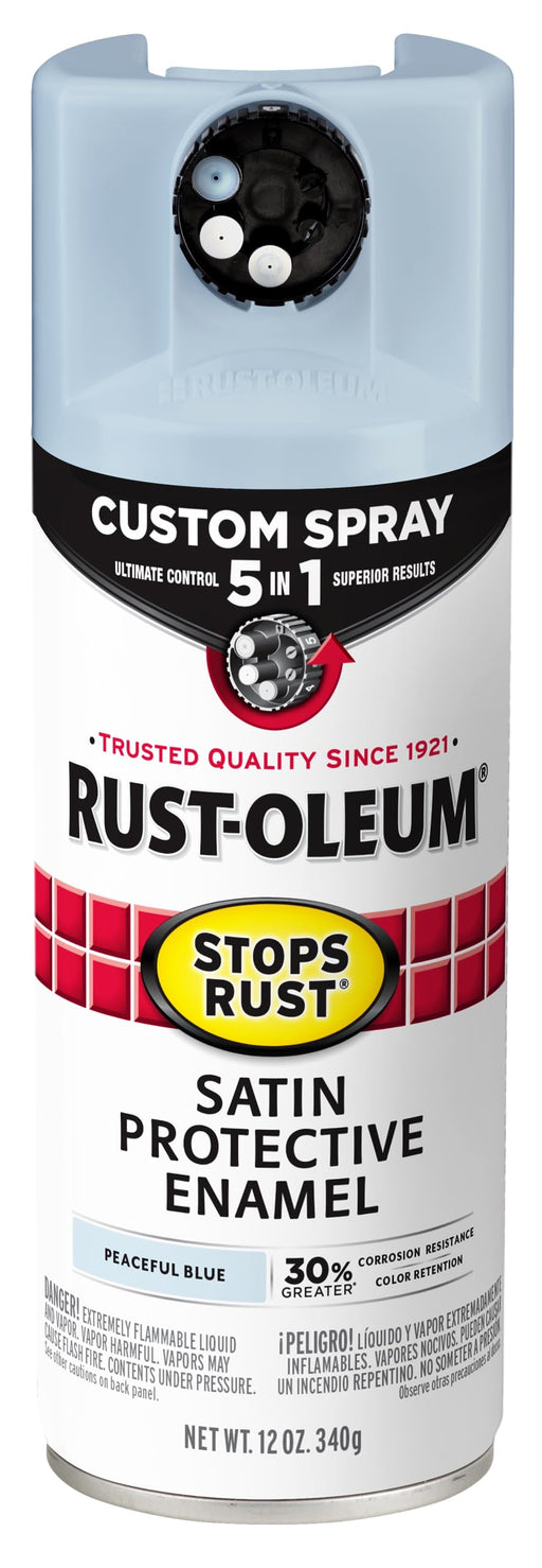 View full detailsRust-Oleum 376882 Stops Rust Custom Spray 5-in-1 Spray Paint, 12 oz, Satin Peaceful Blue (Pack of 1)