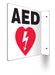 Details for Accuform PSP708 Projection Sign 90D, "AED" with Graphic, 8" x 8" Panel, 0.10" Thick High-Impact Plastic, Pre-Drilled Mounting Holes, Red/Black on White 90 Degree Projection