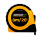 Measure with confidence with Johnson's 8m/26' measuring tape. The sturdy 1" blade features metric/inch graduations on the top side and metric graduations on the bottom side, while the blade hook's triple rivets keeps the blade from slipping during use. For durability, the nylon-coated blade resists abrasion and the rubberized co-molded case absorbs shock and provides a non-slip grip.