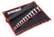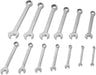 Work with the same quality tools as professional mechanics and service technicians with the STEELMAN 82544 13-Piece SAE 12-Point Combination Wrench Set with Fabric Storage Roll. These durable alloy steel tools are designed to allow you to remove and tighten multiple kinds of fasteners without needing additional tools. Their 12-point box end can be used to work on 12-point, traditional 6-point, and even 4-point nuts, bolts, and other fasteners. Each wrench has an angled open end that makes it easier to use on fasteners in small spaces that restrict access by letting you flip the wrench around and access the fastener from a new angle. The offset box ends provide extra clearance to get past obstructions as well as make room for your hands and knuckles as you work. Multiple size markings on each wrench are stamped into both sides for easy identification doesn't wear away or rub off with repeated tool use. When not in use the included fabric storage roll keeps the set organized and compact for easy transportation. To prevent wrenches from slipping out, a hook and loop secured, angled flap covers the wrench tops and keeps them in place. Reinforced metal grommets on the storage roll allow it to be hung on a wall or tool cart for easy access. Set includes 1/4-inch, 9/32-inch, 3/8-inch, 7/16-inch, 1/2-inch, 9/16-inch, 5/8-inch, 11/16-inch, 3/4-inch, 13/16-inch, 7/8-inch, 15/16-inch, and 1-inch sizes.