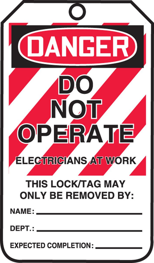 View full detailsAccuform MLT402CTP Lockout Tags, Do Not Operate Electricians at Work, US Made OSHA Compliant Tags, Tear & Water Resistant PF-Cardstock, 5.75"x 3.25" (Pack of 25)