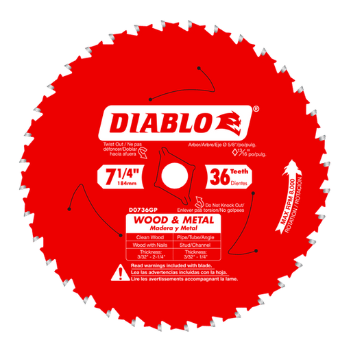 Diablo D0736GPA 7-1/4" x 36-Teeth Carbide Saw Blade for Wood and Metal
