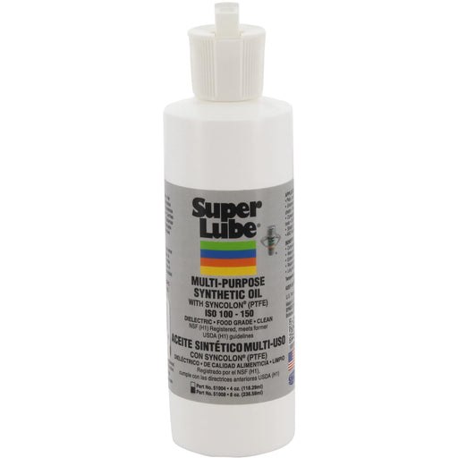 View full detailsSuper Lube Multi-Purpose Synthetic Oil w/Syncolon (Translucent, 8oz Bottle) | NSF Certified Food Grade & Clean | for Industrial Machinery & Equipment