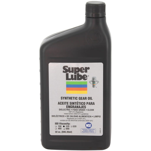 View full detailsSuper Lube Synthetic Gear Oil Hydraulic Grade (Translucent Amber, ISO 220-1qt Bottle) | NSF Certified Food Grade & Clean | Heavy Film Lubricates & Cushions