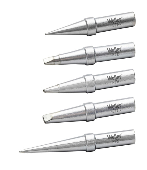 WellerGenuine Weller WE1010 5 pack ETSET Soldering Tip Set consists of 1 each of the ETA, ETB, ETC, ETP, TETS soldering tips. The Weller genuine ET Serie...