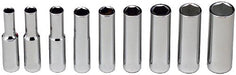• 1/4" Drive 9 Piece Set - 6 Point Deep Sockets, 3/16" - 1/2"