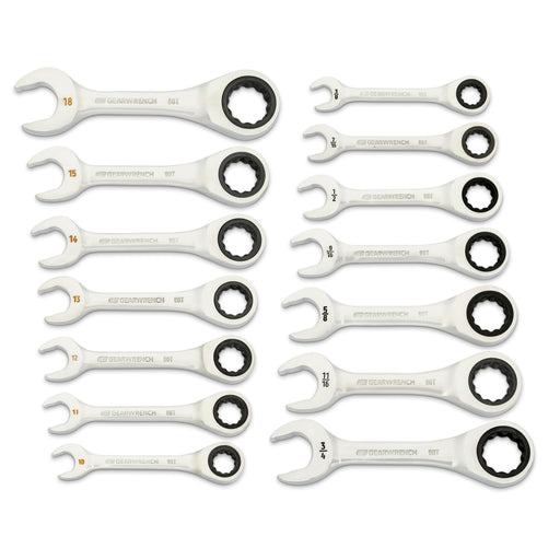Ver todos los detallesGEARWRENCH 86859 14 Piece 90-Tooth 12 Point Stubby Combination Ratcheting Wrench Set, SAE & Metric, 3/8" to 3/4" & 10mm to 18mm