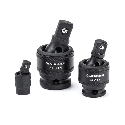 GEARWRENCHGEARWRENCH 3 PC. 1/4", 3/8", 1/2" Drive Impact Universal-Joint Set Key Features: For use with air, electric or battery tools Universal-joint allo...