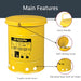 Justrite 6 Gallon Galvanized Steel Oily Waste Can, 16" x 12" Metal Oil Rag Safety Can with Hand Operated Self-Closing Lid for Oil Rag Disposal, Made in The USA, Yellow, 09111