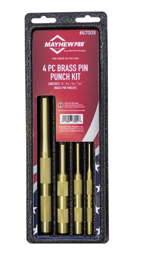 Mayhew ToolsThe Mayhew Pro 67009 4 Piece Brass Pin Punch Set. This includes a 1/8 Inch Pin Punch with a 1" point, 3/16 Inch Pin Punch with a 1 1/4" point, 5/16...