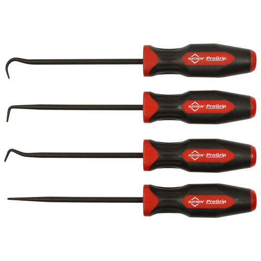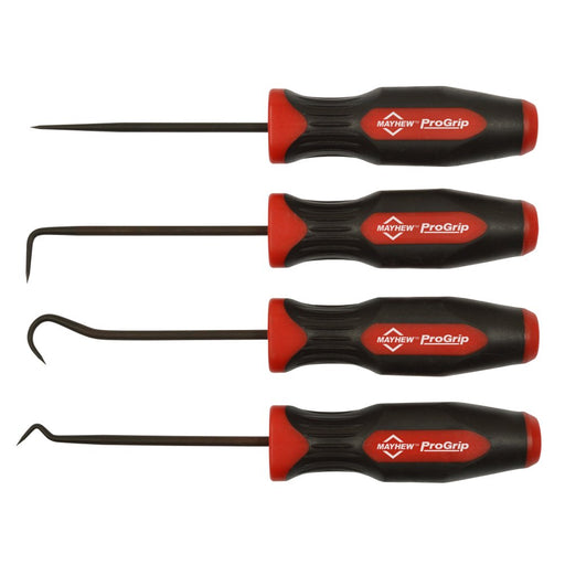 Mayhew Tools4 PC ProGrip Hose Pick Set Key Features: 13228 pick-cotter pin puller Pro 13229 pick-45 DEG hose Pro 13230 pick-90 DEG hose Pro 13233 pick-hose p...