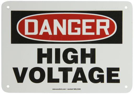 Accuform MELC113XT "Danger High Voltage" Safety Sign, Dura-Plastic, 7 x 10 Inches