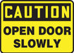 Accuform MABR603 "Caution Open Door Slowly" Safety Sign, Adhesive Vinyl, 7 x 10 Inches