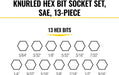 Klein Tools 65213HEX Knurled Hex Bit Socket Set, SAE, 13-Piece