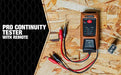 Southwire 40040S Pro continuity tester with built-in remote provides a simple way of checking continuity on wire and cables. Bright leds and loud pulsating beeper. Detachable remote indicator can be used to trace multiple cable runs