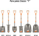 Truper Replacement handle for a classic shovel. Made of ash wood. The pinning feature prevents the wood handle grip from rotating. Polished, lacquered, and waxed. Plastic "Y" type cuff. Specifications: length 28" (71 cm)