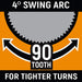 • 90-tooth gear delivers a 4° swing arc to turn a fastener in tight confines