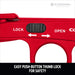 • Large finger hole in the handle for comfort with push button thumb lock for safety