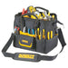 DEWALT's open design easy access tool carrier has 29 tool pockets and sleeves, a zippered main compartment, padded handles, and abrasion resistant rubber feet.