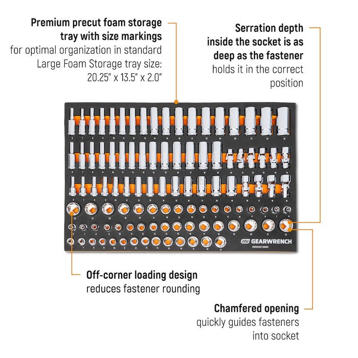 GEARWRENCH GWMSSKT38MM 104 Piece 3/8" Drive Master Metric Socket Set in Foam Storage Tray