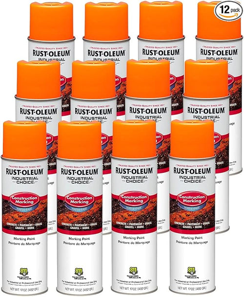 Rust-Oleum 264697 Industrial Choice M1400 System Water-Based Construction Marking Paint, 17 oz, Fluorescent Orange (Pack of 12)