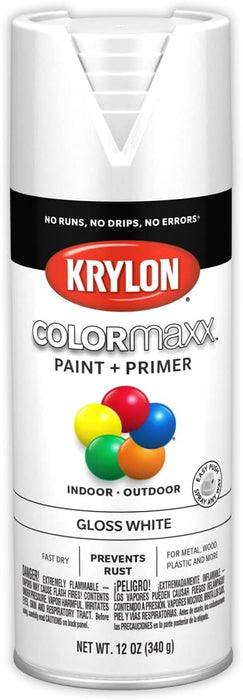 Krylon K05545007 COLORmaxx Spray Paint and Primer for Indoor/Outdoor Use, 12 Oz, Gloss White (Pack of 1)