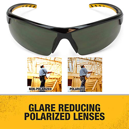 DEWALT DPG99 HDP Polarized Safety Glasses ANSI Z87.1+ Rated Protective Eyewear with Rubber Temples, Adjustable Nosepiece, Neck Cord & Carry Bag
