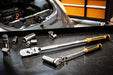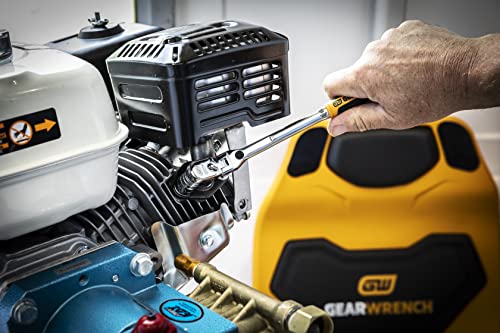 The GEARWRENCH 120XP™ ratchets take access and speed to the next level, making it easier and quicker to complete jobs. The double stacked pawl design gives 120 positions providing a 3 degree ratcheting arc. All of the ratchets feature a low profile head and flush mounted on/off switch, allowing better access in tight spaces. The ratchets are a bright, full polish chrome to resist rust & corrosion and have an enclosed head design which allows for extreme resistance to dirt infiltration. Available in standard and extra-long length handles.