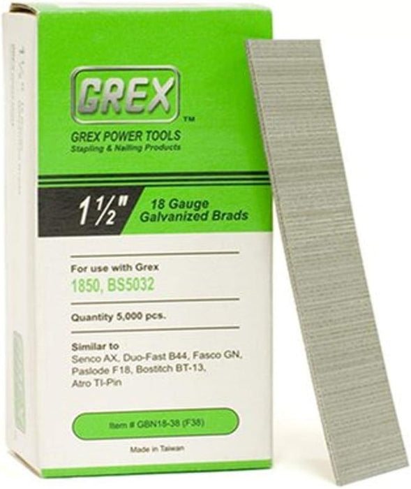 Grex GBN18-38 (F38) 1-1/2 In. 18 Gauge Brad Nails, Galvanized, 5M