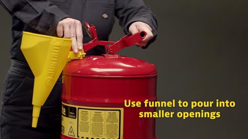 Justrite 2 Gallon Type I Yellow Safety Can for Diesel with Flame Arrester, Self-Closing Lid, and Funnel, Made in The USA, Galvanized Steel Flammable Storage Can, 7120210