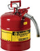 Justrite 5 Gallon Type II Red Safety Gas Can for Gasoline with Flame Arrester, Self-Closing Lid, and 1" Flexible Metal Spout, Made in the USA, Galvanized Steel Flammable Storage Can, 7250130