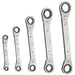 • Set of offset reversible ratchet box wrenches in heavy plastic roll-up pouch