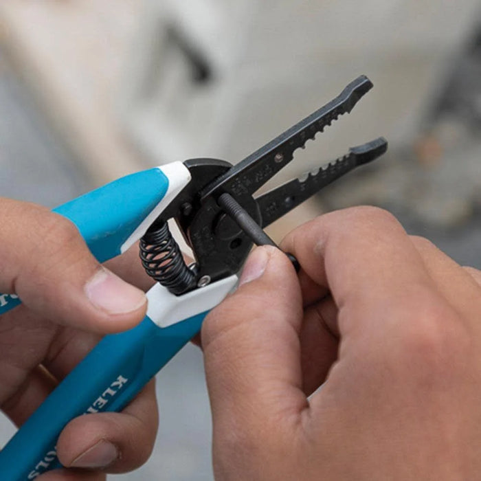 This Wire Stripper/Cutter features six stripping holes and a shear-cutting knife to handle 8-18 AWG Solid and 10-20 AWG Stranded wire, plus shearing holes for 6-32 and 8-32 bolts. Longer hand grip coverage provides a more comfortable grip while the updated lock tucks nicely out of the way. The narrow head design allows this tool to easily get into tight places. For more than 160 years, Klein Tools has manufactured premium-quality, professional-grade hand tools that deliver the performance, durability and precision needed to get the job done right. Our family of engineers, workers and craftsman continue to put six generations of expertise into every tool we create by using only the highest quality materials, superior workmanship, and keeping manufacturing as close to home as we can. Klein isn't just the name of our company, it's also our family name. And since we're an American company that's family-owned and family-run, you know you can count on us to be here tomorrow. Klein Tools doesn't just make great products, we make great products that stand up to the demands of the professionals who use them every day ... Since 1857.