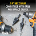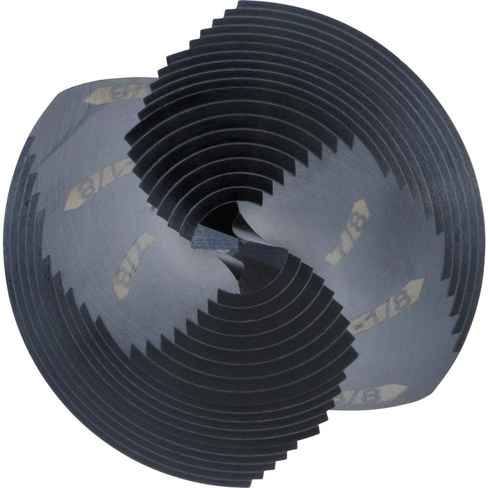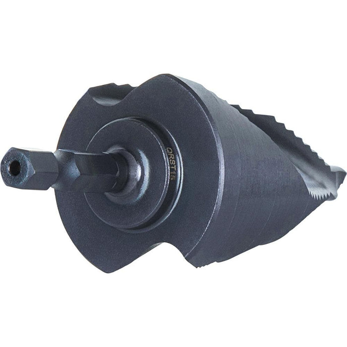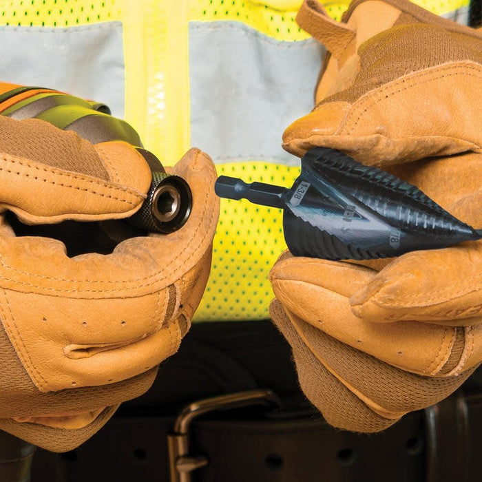 Klein Tools QRST15 Step Drill Bit, Quick Release Spiral Double-Fluted, 7/8 to 1-3/8-Inch, Hex Shank, Cut Steel, Wood, Plastic, Aluminum