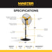 Details for Master MAC-30P High Velocity Pedestal Fan, 3 Speed Portable Metal Standing Fan with Adjustable Height & Swivel Head, Powerful & Efficient Cooling, 30 Inch