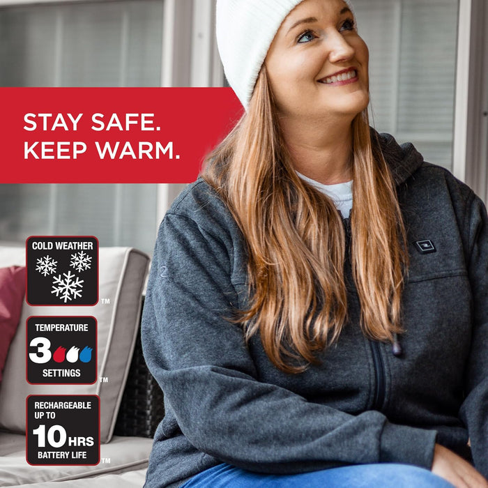 Stay warm and comfortable in cold environments with the Radians RHG-H301 Women's Heated Hoodie Kit. Designed for those who need reliable warmth, this high-performance hoodie features three core heating zones on the chest and upper back, powered by a rechargeable 7.4V battery. With adjustable heat settings—low, medium, and high—you can easily customize your warmth level, enjoying up to 10 hours of heat on a single charge. The hoodie is crafted with a durable cotton/polyester blend outer shell and a cozy waffle knit lining, offering both comfort and durability. Additional features include two exterior hand warmer pockets, a zippered chest pocket, and an internal secure battery pocket, ensuring convenience and functionality. Plus, the built-in USB port allows you to charge your devices on the go. Whether you're working outdoors, attending a sporting event, or embarking on an outdoor adventure, the Radians RHG-H301 is your go-to choice for stylish, comfortable, and long-lasting warmth.
