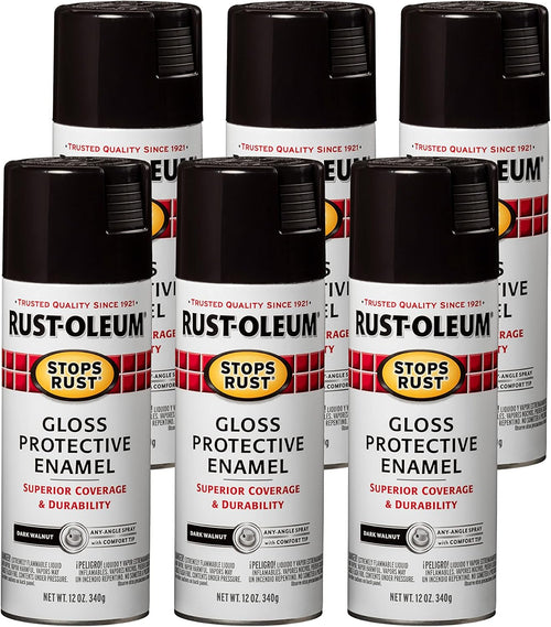Rust-Oleum 262661 Stops Rust Spray Paint, 12 oz, Gloss Dark Walnut (Pack of 6)