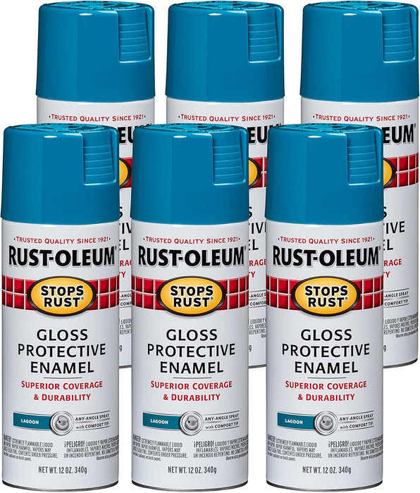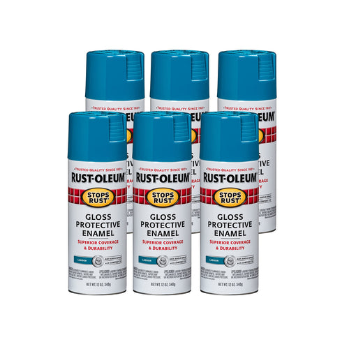Rust-Oleum 277239 Stops Rust Spray Paint, 12 oz, Gloss Lagoon (Pack of 6)