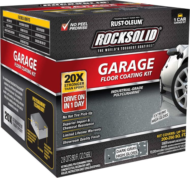 Rust-Oleum 317286 RockSolid Polycuramine Garage Floor Coating, 1 Car Kit, High Gloss Dark Gray