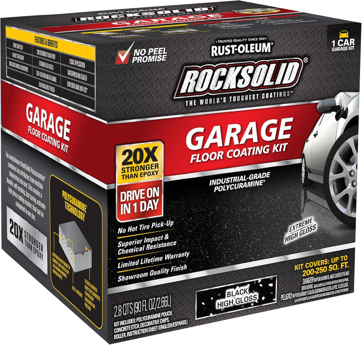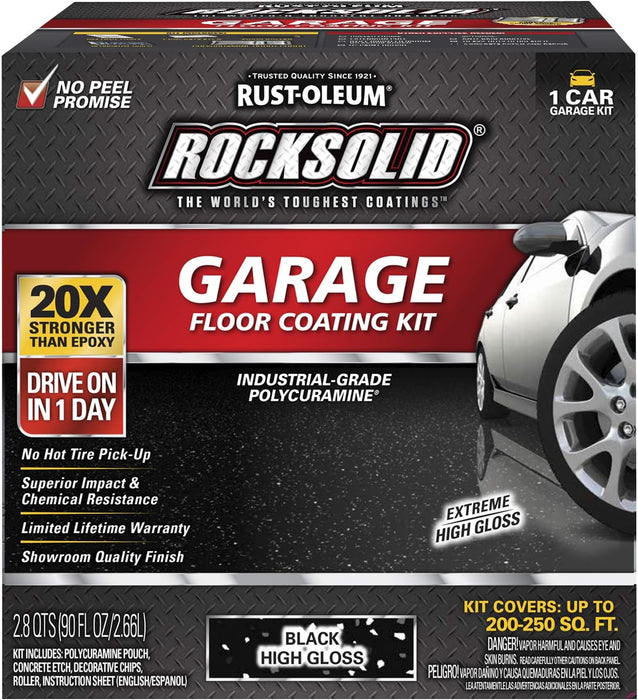Rust-Oleum 318712 RockSolid Polycuramine Garage Floor Coating, 1 Car Kit, High Gloss Black